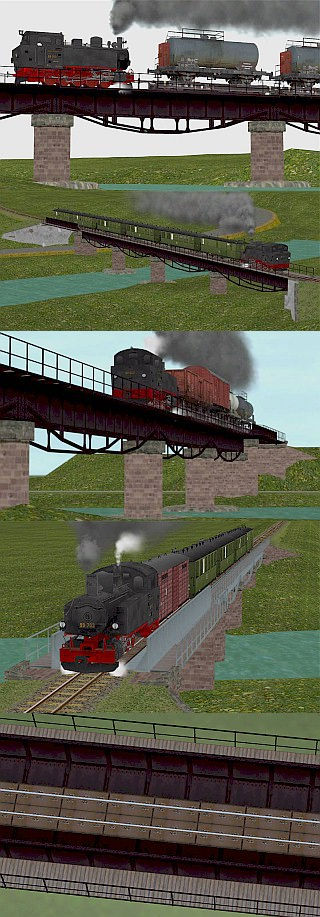 Nossen II Brücke der 750 mm Schmalspurbahn in Nossen (konstruiert für das Anlagenprojekt NOSSEN) Beschreibung: Der Bausatz Brücke Nossen II enthält die eingleisige Brücke über die Freiberger Mulde im Zuge der 38,8 km langen, zwischen 1886 und 1899 in Betrieb genommenen sächsischen Schmalspurbahnstrecke Nossen - Dittmannsdorf - Wilsdruff - Freital=Potschappel unmittelbar hinter der Ausfahrt aus dem Bahnhof Nossen. Das Modell gibt den Bauzustand wieder, wie er um 1970 (kurz vor der Stilllegung) bestanden hat. Der Bausatz kann in einer rostigen Ausführung und im Neubauzustand installiert werden. Die Auswahl treffen Sie bei der Installation für alle Modelle gleichermaßen, sie kann nachträglich verändert werden. Die 90 m lange Brücke ist mit fünf Überbauten das größte Brückenbauwerk der Strecke, die 1972 ihren Personenverkehr verlor, Ende 1973 gänzlich stillgelegt und bis 1978 fast vollständig abgetragen wurde. Eine ausführliche Beschreibung als pdf liegt bei. Der Autor dankt Herrn Thomas Rietz, Nossen, für das