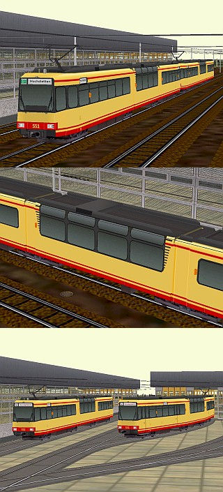 Konzept der Karlsruher GT6-80C basiert auf dem Stadtbahnwagen B. Die zahlreiche Anpassungen sorgten aber für eine eigene Baureihebezeichnung. Im Gegensatz zum B-Wagen ist der GT6-80C ein Einrichtungsfahrzeug das auch für engere Kurven ausgelegt ist. Die erste Serie 501-520 wurde ab August 1983 von Waggon Union/BBC ausgeliefert. 1987 folgte die Serie 521-540. Im Gegensatz zu den Wagen der ersten Serie wurden diese 20 Stadtbahnwagen von Duewag/BBC hergestellt, und einige Jahre später mit einem C-Teil zu GT8-80C verlängert. Besonderheit sind die 10 Wagen 551-560 : diese haben ein Panoramamittelteil, um die schöne Landschaft auf die Albtalstrecken genießen zu können. 551-555 = GT8-80C 556-560 = 1990 Umbau mit C-Teil (ex GT6-80C 585-590) Typisch für die Karlsruher 750V-Gleichstromstadbahnwagen ist die Asymetrie der Wagenkasten: damit liegt rechts auch die vordere und hintere Tür parallel zum Bahnsteig, ohne das die linke angeschrägte Seite in engen Gleisbogen zu weit ausschwenkt. Bis heute kommen diese Wagen zum Einsatz auf der Albtalbahn (Bad Herrenalb S1 /Ittersbach S11 -Ettlingen-Karlsruhe-Neureut-Hochstetten) und auf der Linie S2 der Verkehrsbetriebe Karlsruhe (Rheinstetten-Karlsruhe-Stutensee-Spöck) |
