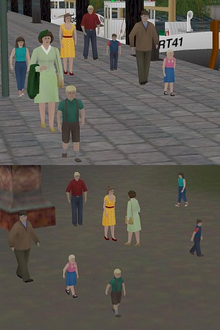 Gehende Menschen Set 2 incl. Update Beschreibung: Bewegliche Figuren beleben jede EEP- Anlage und sind seit Jahren der Wunsch unzähliger User. Nachdem endlich eine Lösung gefunden wurde, folgt nunmehr ein 2. Set mit gehenden Menschen, wie man sie im Alltag antrifft. Das Set enthält 8 Modelle. Einsatz: ab Epoche III Inhalt und Installation: Rollmaterial\Figuren oder Andere: Frau_04_BH1 Hinweis: Durch das Update haben die Figuren eine neue Bewegungsengine. Die Modelle sind für den Einsatz auf einspurigen Wegen/Wasserstraßen konstruiert und können mittels Slider/Kontaktpunkt („Figur“) bis zu 10 m abgesenkt werden. Bei Steigungen/Gefällen behalten sie ihren aufrechten Gang bei. Performanceoptimiert. Einsetzbar bis EEP6.1 |