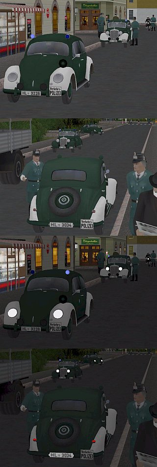 | Polizeifahrzeuge Epoche IIIa Beschreibung: Schon unmittelbar nach Ende des 2. Weltkrieges wurden in den Besatzungszonen in Deutschland Polizeikräfte aufgestellt. Waren diese zunächst mit alten Fahrzeugen aus Wehrmachtsbeständen ausgerüstet, so erhielten sie nach Produktionsaufnahme der deutschen Automobilindustrie neueste Kraftfahrzeuge, wie den VW-Käfer mit Ovalfenster und den MB 170 Vb. Zur Unterscheidung von Land- bzw. Stadtpolizei zur Verkehrspolizei erhielten die Fahrzeuge der Verkehrspolizei weiße Kotflügel. Das Set enthält VW-Käfer Bj 53 mit Ovalfenster und MB 170 Vb der Polizei und der Verkehrspolizei mit Winker, wie er bis Mitte der 50er-Jahre gemäß StVO vorgeschrieben war. Einsatz: Ab Epoche IIIa Inhalt und Installation: Lieferumfang: 8 Modelle Rollmaterial\Strasse\Notdienst oder PKW: MB-170-Vb_POLIZEI_BH1 Immobilien\Verkehr\Notdienst oder Fahrzeuge MB-170-Vb_POLIZEI_IM_BH1 Hinweis: Die Modelle sind alle ab EEP3 beleuchtet. Die