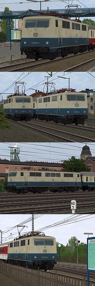 Im Set enthalten: Rollmaterial/Schiene/Lokomotiven DB_111-015-bb-EpIV_DB1-SK2.gsb Beschreibung: Die Baureihe 111 ist eine zwischen 1974 und 1984