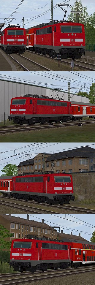 Im Set enthalten: Rollmaterial/Schiene/Lokomotiven DBAG_111-009-vr-EpVI_DB1-SK2.gsb Beschreibung: Die Baureihe 111 ist eine zwischen 1974 und 1984