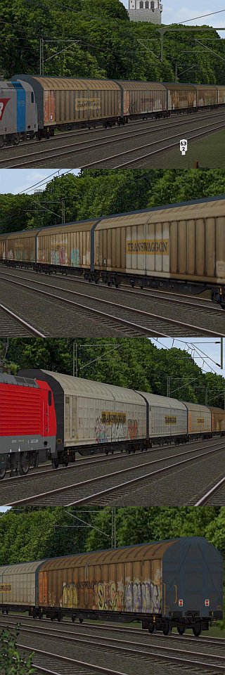 Hinweis: der Download hat ca. 9 MB Im Set enthalten: Rollmaterial/Schiene/Gueterwaggons DB_Habbiins14-1-TWA_DB1 Beschreibung: In diesem Set sind 11 vierachsige Schiebewandwagen vom Typ Habbiins der Transwaggon enthalten. Die Wagen sind ab Epoche V einsetzbar. Hinweis: realistische Fahreigenschaften Zwei Texturauflösungen auswählbar. Beim Installieren hat man die Wahl zwischen zwei Texturen. Die eine Textur ist in der Auflösung 512x512 Pixel und wird für schwächere Rechner empfohlen.