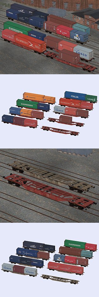 In diesem Set sind 18 Containertragwagen vom Typ Sgnss/Sgns