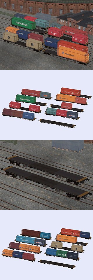 In diesem Set sind 18 Containertragwagen vom Typ Sgjs