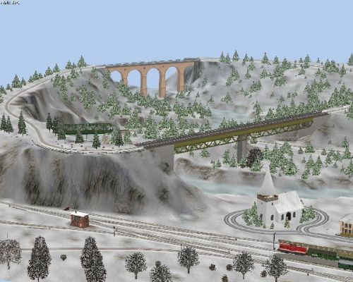 Der Anlage "Wintertann" diente ein Gleisplan aus einem Gleisplanbuch als Vorlage. Nach Umsetzung des Gleisplanes in EEP5 ergab sich eine Anlagengröße von 1,0 km x 0,5 km.