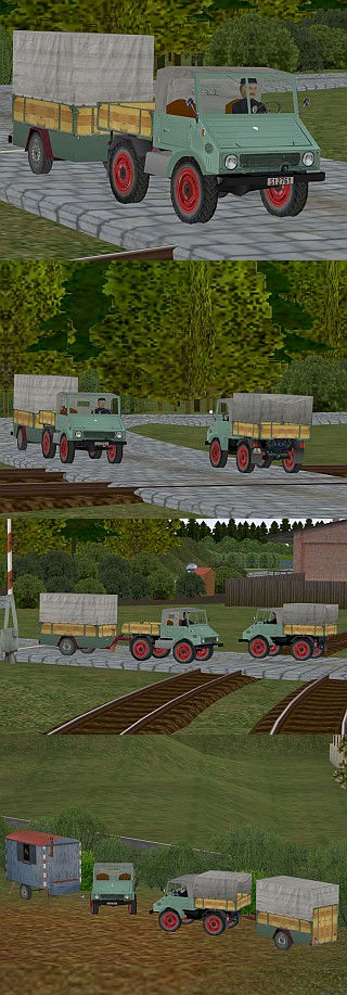Beschreibung: Dieses Modell ist einem in Deutschland gebauten, allradgetriebenen Klein-LKW und Geräteträger nachempfunden, der im Jahr 1953 auf den Markt kam. Bestandteile des Sets: Rollmaterial: LKW_U401_S.gsb LKW_U401_P_S.gsb Haenger_U401_S.gsb LKW_U401_Fw.gsb LKW_U401_P_Fw.gsb Haenger_U401_Fw.gsb Haenger_U401_Bw.gsb Die Spurlage des Fahrzeugs ist via Schieberegler umschaltbar zwischen Landstraße oder Feldweg. (=mittig) Resourcen\Rollmaterial\Strasse\LKW\ Immobilien: LKW_U401_im.gsb LKW_U401_im_m_Fahrer.gsb LKW_U401_P_im.gsb LKW_U401_P_im_m_Fahrer.gsb Haenger_U401_im.gsb Haenger_U401_Bw_im.gsb Resourcen\Immobilien\Verkehr\LKW\ Hinweis: Die Modelle sind für EEP 6 optimiert. auch gelistet als FF1404 Trend |