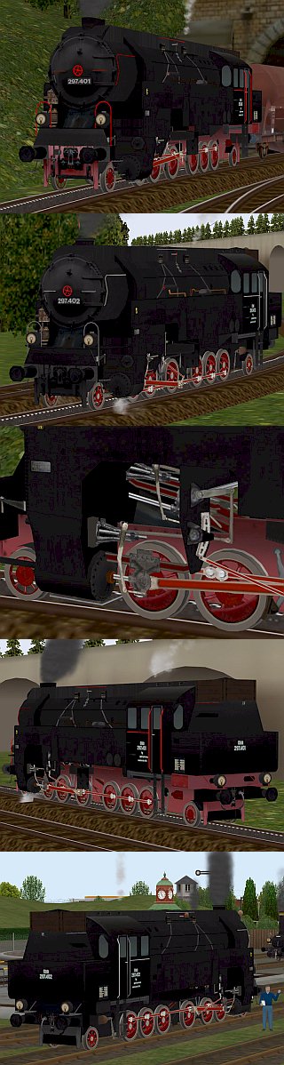 als die größte und stärkste Zahnraddampflokomotive der Welt. Technische Daten: LüP: 14.800 mm Im Set enthalten: OBB_297-401.gsb Resourcen\Rollmaterial\Schiene\Lokomotiven\ 437_Zahnstange_1435_FF1.def Zahnstange_Anfang_1435_FF1.gsb Resourcen\Gleisobjekte\Sonstiges Details zu den Modellen: Das Modell ÖBB 297.401 entspricht der Lokomotive in dem