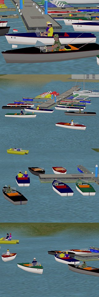 Beschreibung: Dieses Kleinboote-Set liefert weitere Modelle für den Badebetrieb im Strandbad oder am Baggersee. Es beinhaltet vier Elektroboote als Rollmaterial und vier unbesetzte Elektroboote, die als Immobilie einsetzbar sind. Details zu den Modellen: Zwei der Modelle des Typs Rollmaterial sind nicht mit Spurlage mittig, sondern je um einen Meter nach links, bzw. rechts versetzt konstruiert. Dadurch ergibt sich ein schöneres Bild, wenn die Boote im Pulk hintereinander fahren. Hinweise: Bei den Booten des Typs Rollmaterial kann via