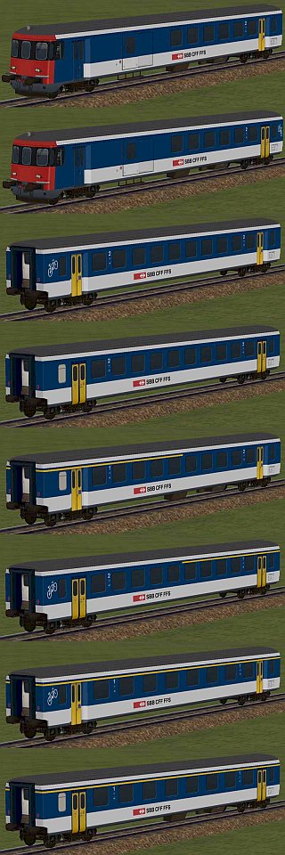 Beschreibung: Die Einheitswagen I der SBB sind die Nachfolger der Leichtstahlwagen und wurden zwischen 1956 und 1967 gebaut. Sie waren ursprünglich grün lackiert und haben ein Gewicht von 28 bis 32 Tonnen und eine zulässige Höchstgeschwindigkeit von 140 km/h. Die ersten vier Einheitswagen erschienen 1956, kurz vor der Abschaffung der dritten Wagenklasse noch als C4ü. Bei der in den 80-er Jahren erfolgten Umstellung auf kondukteurlosen Betrieb in Regionalzügen wurden alle dazu ausgewählten Wagen für den Betrieb in Pendelzügen umgebaut und mir dem blau/kieselgrau/gelb/roten Anstrich versehen. Lieferumfang: SBB Einheitswagen Typ I A, AB, B, BDt in der Kolibri-Farbgebung in je vier Varianten (alte/neue Türen, ohne/mit Velotransportmöglichkeit). Bestandteile des Sets: Rollmaterial: SBB_EW1_B_k_FH1.gsb Resourcen\Rollmaterial\Schiene\Personenwaggons\ Hinweis: Das Rollmaterial ist ab EEP3 beleuchtet. auch gelistet als V60NFH10001 Trend |
