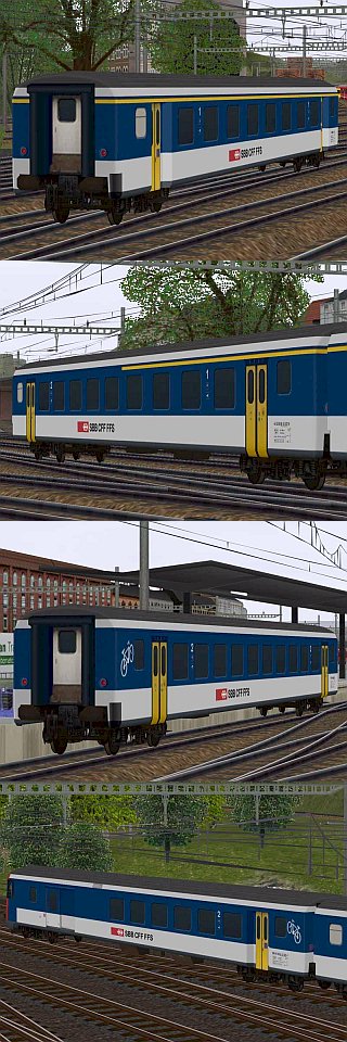 Beschreibung: Die Einheitswagen II waren fast identisch mit den Einheitswagen I. Äusserlich fallen sie durch eine niedere Fensterlinie und durch nur noch halbhohe WC- und Einstiegsbereichsfenster auf. Des Weiteren weisen sie eine geringere Fussbodenhöhe auf als die EW I. Sie wurden zwischen 1965 und 1976 gebaut. Bei der in den 80-er Jahren erfolgten Umstellung auf kondukteurlosen Betrieb in Regionalzügen wurden alle dazu ausgewählten Wagen für den Betrieb in Pendelzügen umgebaut und mir dem blau/kieselgrau/gelb/roten Anstrich versehen. Zudem erhielten sie nach und nach automatische Türen. Lieferumfang: SBB Einheitswagen Typ II A,AB,B,BDt in der Kolibri-Farbgebung in je vier Varianten (alte/neue Türen, ohne/mit Velotransportmöglichkeit). Bestandteile des Sets: Rollmaterial: SBB_EW2_B_k_FH1.gsb Resourcen\Rollmaterial\Schiene\Personenwaggons\ Hinweis: Das Rollmaterial ist ab EEP3 beleuchtet. Technische Daten: A: LüP: 23700mm , 30t, 48 Sitzplätze AB: LüP: 24240mm , 30t, 24/1, 39/2 Sitzplätze B: LüP: 24700mm , 30t, 80 Sitzplätze BDt: LüP: 25430mm , 30t, 40 Sitzplätze auch gelistet als V60NFH10002 Trend |