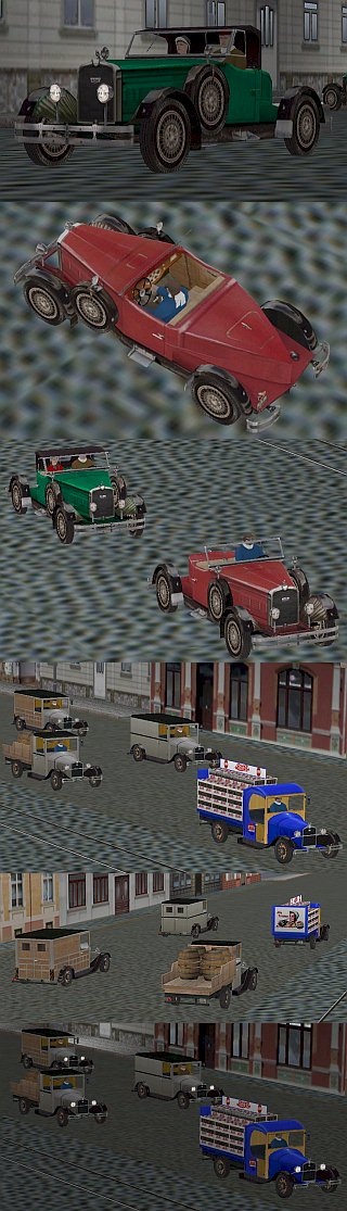 Nachbau zweier Pkw’s und 4 Lkw’s aus der zeit um