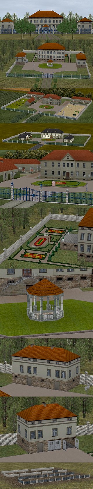 Beschreibung: Nachbau 3 verschiedener Herrenhäuser als Komplettmodell und Einzelmodelle. Die Komplettmodelle sind teilweise sehr aufwendig und liebevoll gestaltet. Zusätzlich beinhaltet das Set ein Mauer und Zaunset mit beweglichem Tor. Das Set Besteht aus folgenden 24 Modellen. Herrenhaus_Mauer_Ecke_HB2 Herrenhaus_Mauer_HB2 (für fortlaufenden Maueraufbau) Herrenhaus_Mauer_mit_Stuetze_HB2 (Eckpfeiler) Herrenhaus_Mauer_Ohne_Stuetze_HB2 Herrenhaus_Mauer_Tor_HB2 Herrenhaus_Zaun_Ecke_HB2 Herrenhaus_Zaun_HB2 Herrenhaus_Zaun_mit_Stuetze_HB2 Herrnhaus_Zaun_Ohne_Stuetze_HB2 Herrenhaus_Zaun_Tor_HB2 Herrenhaus01_Angestellten_Haus_HB2 Herrenhaus01_Chauffeur_Haus_HB2 (Garage mit Wohnung) Herrenhaus01_einzel_HB2 Herrenhaus01_kmpl_HB2 (Komplett aufgebaute Immobilie mit Zaun, Mauer und Tor plus Lampen, Weg und Renaissancegarten) Herrenhaus01_Pavillon_HB2 Herrenhaus02_Chauffeur_Haus_HB2 Herrenhaus02_einzel_HB2 Herrenhaus02_kmpl_HB2 (Komplett aufgebaute Immobilie, als Reiterhof) Herrenhaus02_Pferdeboxen_HB2 Herrenhaus02_Pferdeparcour_HB2 (Mit Hindernissen, wie Oxer und Wassergraben etc.) Herrenhaus03_Angestellten_Haus_HB2 Herrenhaus03_Chauffeur_Haus_HB2 Herrenhaus03_einzel_HB2 Herrenhaus03_kmpl_HB2 (plus zweiter Garage) in Resourcen\Immobilien\Domizil\Stadt\ Einsatz: Für Nostalgieanlagen ab Epoche II oder Stadtrandbebauung. Lieferumfang: 24 Modelle Hinweise: Die Modelle sind ab EEP3 beleuchtet und verfügen teilweise über bewegliche Türen Performanceoptimiert. Einsetzbar bis EEP6.1 |