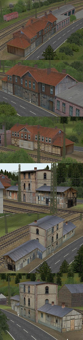 EG Ruebeland Alter Bahnhof und Wasserhaus Alter Bahnhof Beschreibung: Enthalten sind originalgetreue Nachbauten der beiden Bahnhofsimmobilien Empfangsgebäude und Wasserhaus alter Bahnhof Rübeland. Zum Lieferumfang gehören folgende Modelle: EG_Ruebeland_Alter_Bahnhof_JE1.gsb Wasserhaus_Ruebeland_Alter_Bahnhof_JE1.gsb Installationspfad: Immobilien \ Domizil \ Land \ Harz Einsatz: Anlage Rübeland von Andreas Großkopf oder Dorf, Kleinstadt, Bahnhofsbereich. Hinweis: Die Modelle sind alle konvertiert. |