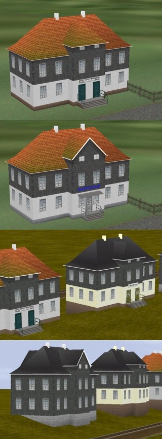 Herr Jürgen Engelmann hat sein früheres Shopset JE100001 hier als Freeset bereitgestellt und wünscht allen EEP Usern Freude daran. Schieferhäuser Set 1 Rodachtal Beschreibung: Das Set enthält 6 Schieferhäuser, die als weitere Varianten jeweils unterkellert sind. Durch die zusätzlich auf Niveau 0 bis – 2 m angebrachten fensterlosen Wände, lassen sich die mit „K“ gekennzeichneten Gebäude an einem abfallenden Hang einsetzen. Alle Gebäude sind ab EEP 3 beleuchtet. folgende Modelle sind enthalten: Raiffeisenbank_1_Rodachtal_JE1 Schule_1_Rodachtal_JE1 Rathaus_1_Rodachtal_JE1 Installpfad: Immobilien / Domizil / Land Einsatz: Ländliche Gebiete / Kleinstadt Viel Freude an dem Modell ! |