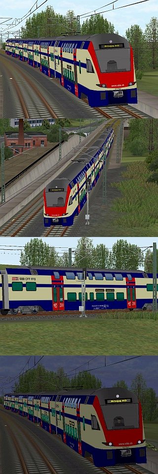 im Set enthalten sind sechs Modelle als Zug: SBB6_511_100.gsb Resourcen\Rollmaterial\Schiene\Triebwagen Beschreibung: Der Doppelstocktriebzug der S-Bahn Zürich hat eine Länge von 150 m und besteht aus 2 Triebköpfen und 4 Mittelwagen. Die Zürcher S-Bahn mit ihren markanten Doppelstockzügen und den modernen Bahnhöfen ist heute fester Bestandteil von Zürich. Sie bildet das Rückgrat des Zürcher Verkehrsverbundes. Es ist die beste Verbindung zwischen Stadt und Land. Der Aufbau im EEP erfolgt in der Reihenfolge 100, 200, 300, 400, 500 und 600. Hinweise: Realistische Fahreigenschaften Beide Triebköpfe sind angetrieben. Der Triebzug hat Fahrzeugführer, die mittels Schieber eingesetzt werden sowie verschiedene Zielanzeigen, die mittels Schieber eingestellt werden. Technische Merkmale des Vorbildes: Vielfachsteuerung bis zu 4 Einheiten möglich. Vmax = 160 km/h; Max. Leistung am Rad 6.000 kW. Auch gelistet als V60NMK10196 Trend |
