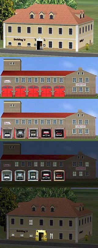 Die vorderen Tore der FFW- Modelle können per Mausklick geöffnet werden.