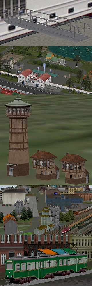 folgende Modelle und Anlagen bis EEP6 sind im Download enthalten: Konstrukteur Bernt Hoppe BH1: liefert das Modell Gangway-Schiff_BH1.gsb Resourcen\Rollmaterial\Wasser\ Es ist eine neutrale Gangway als Userwunsch. Konstrukteur Paul Wessling PW1: liefert die Modelle: Stellw_H-berg_Hdgf_pw1.gsb Resourcen\Immobilien\Verkehr\Bahnhoefe\ Es sind Stellwerke und Wasserturm sowie Zaunfelder, passend zu Hardenberg Konstrukteur Michael Kozak MK1: liefert die Modelle: Partywagen_TW.gsb Resourcen\Rollmaterial\Schiene\Strassenbahn\ Als Userwunsch wurde dieses Set wieder bereit gestellt. Der Osterhase hat auch noch zwei Anlagen für EEP6 dabei: Anlagenbauer Björn /Daubentonia liefert die Anlage: Zoo-Diorama, der Name erklärt sich selbst, da hilft einfach nur öffnen und betrachten Anlagenbauer Matthias Schmidt alias Transrapidfan liefert die kleine Industrieanlage: Das Tool Totergang wurde entfernt, da einige Virenprogramme einfach nicht begreifen wollen, daß da kein Virus enthalten war. |