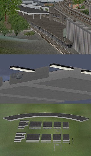 modernere Bahnsteigdächer, in verschiedenen Breiten, wie sie z.B. bei der