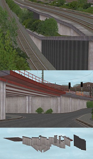 Beschreibung: Mit diesem Bausatz lassen sich unterschiedliche Stützmauersituationen, wie sie z.B. an den Bahnanlagen in Hamburg vorkommen, nachbauen. Bestandteile des Sets Bestandteile: 4 Gleisstile (Gleisstile/Sonstige) HH-S-Bahn_Bruecke_pw1 22 Immobilien (Immobilien/Verkehr/Bahnhoefe) HH-Bruecke-unters_pw1 (zur Kombination mit dem Gleisstil HH-S-Bahn_Bruecke_pw1, um auch tiefere Unterführungen darstellen zu können) Abschlussblenden für die Splines Mauerelemente, 850 cm hoch, 12 m lang HH-Mauer_Masttraeger_pw1 (Mastträger zum seitlichem ansetzen an die Splines, so groß ausgelegt, das die Standard EEP Masten verwendet werden können) Mauerblenden, um bei steigenden oder abfallenden Splinen