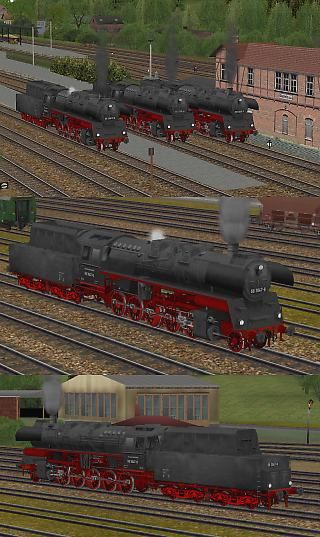 Dampflokomotivenset Baureihe 58.30 der Deutschen Reichsbahn Epoche IV im Set enthaltene Modelle: DR_58_3005_4.gsb + Tender_DR_58_3005_4.gsb DR_58_3021_1.gsb + Tender_DR_58_3021_1.gsb DR_58_3047_6.gsb + Tender_DR_58_3047_6.gsb Alle Lokomotiven mit Tender, Beleuchtung und Rauchentwicklung ab EEP 3. Modellbeschreibung: Das Modellset besteht aus 3 Lokomotiven mit 3