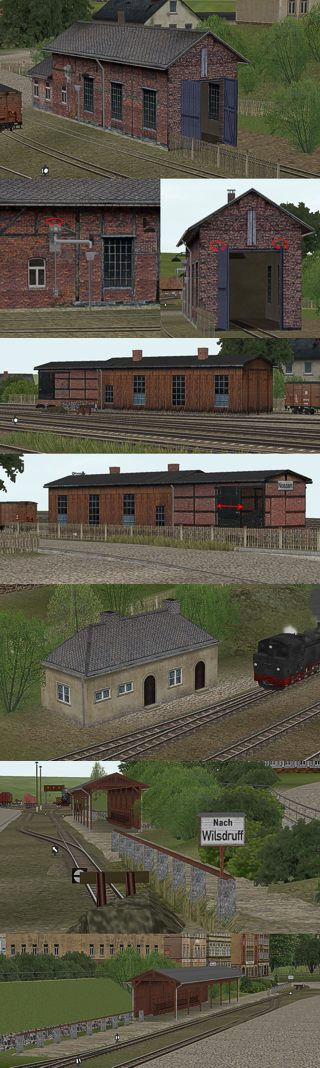 Betriebsgebäude Schmalspurbahn Bahnhof Nossen (Sachsen) Beschreibung zum Vorbild: Das Set beinhaltet die Gebäude des ehemaligen Schmalspurbahnhof Nossen (Sachsen). Weiterführende Informationen zur Geschichte des "Wilsdruffer Netzes" und dem ehemaligen Endbahnhof der Schmalspurbahn finden Sie auf den Internetseiten der IG Verkehrsgeschichte Wilsdruff e.V. www. wilsdruffer-schmalspurnetz.de Vielen Dank an Herrn Thomas Rietz für die gute Zuarbeit. Zum Lieferumfang gehören folgende Modelle: vier Immobilien Bhf_Nossen_Lokschuppen_750.gsb Installationspfad Immobilien\Verkehr\Bahnhoefe\Nossen ein Gleisobjekt Bhf_Nossen_Lokschuppen_750.gsb Installationspfad Gleisobjekte\Gleise\Bahnhoefe\Nossen\ Einsatz Anlage Nossen von Herrn Andreas Großkopf, Kleinstadt, Bahnhofsumfeld Hinweise Der Lokschuppen besitzt einen funktionsfähigen Wasserkran und bewegliche Türen. Die Türen des Kohleschuppens sind verschiebbar. |