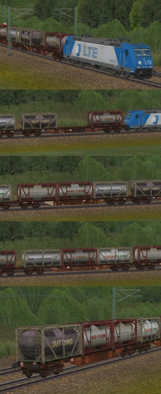 Containertragwagen beladen mit Tankcontainern. Einsatz ab Epoche Vb.