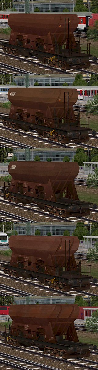 Im Set enthalten: DBFacs140leer_1.gsb DBFacs140leer_2.gsb DBFacs140Ladung_1.gsb DBFacs140Ladung_2.gsb DBFacs140Ladung_3.gsb Resourcen\Rollmaterial\Schiene\Gueterwaggons\ Beschreibung: Das Set besteht aus 5 Waggons der Gattung Facs140 (Schotterwaggons) mit unterschiedlichen Ladungszuständen und Wagennummern. Die Waggons sind in unterschiedlichen Farbgebungen und mit Alterungsspuren gestaltet. Alle Waggons haben beiderseitig Zs-Signale, die mit Slider eingestellt bzw. versenkt werden können. Einsatz ab Epoche V Einige Technische Daten Technische Daten: LÜP 13.540 mm Besonderheiten: realistische Fahreigenschaften Auch gelistet als V60NUG20003 Trend |
